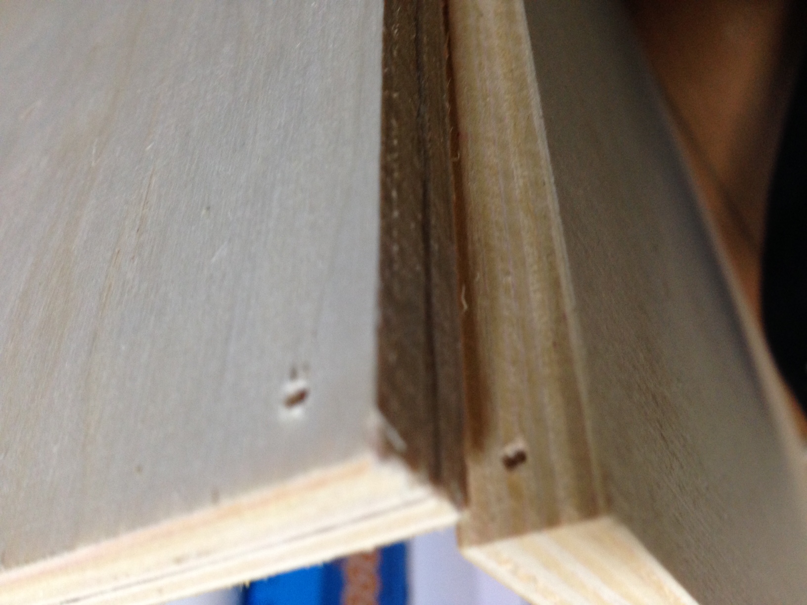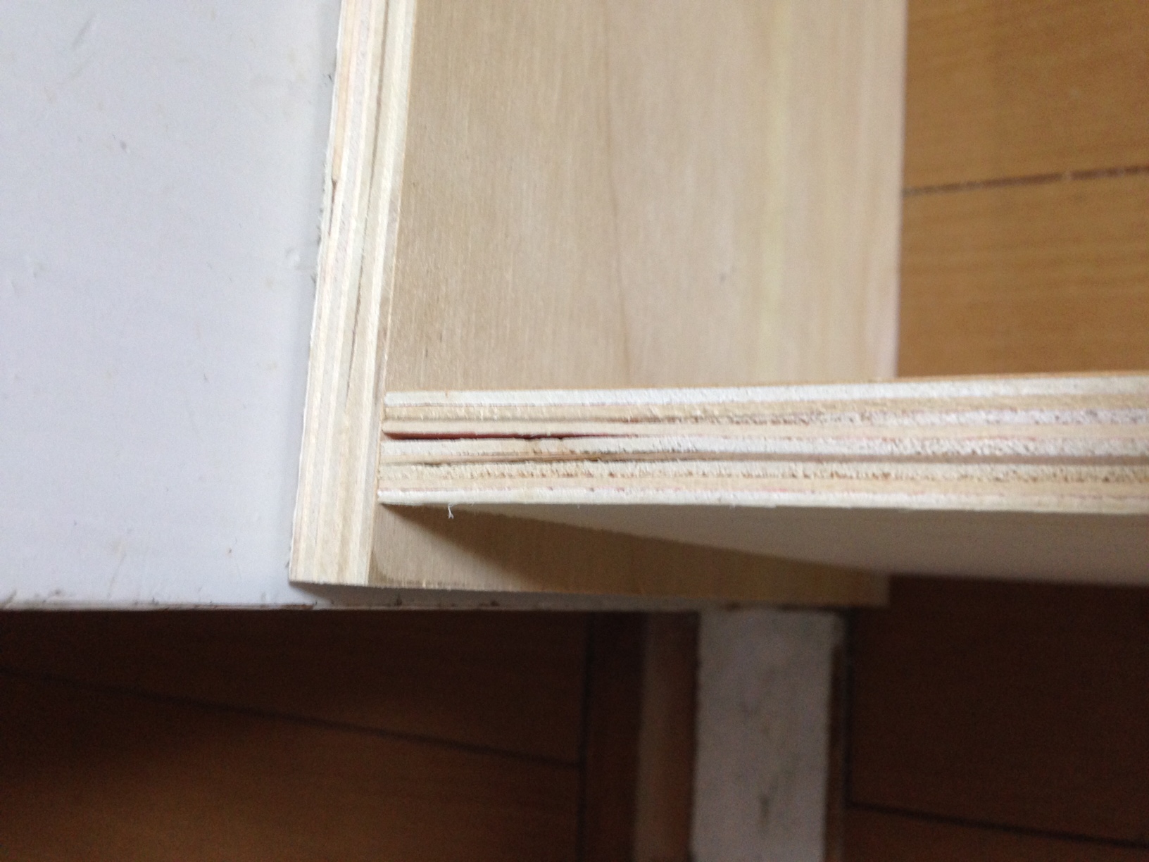 合板の接合面や木の端っこにビスを打ち込むと良く木同士の剥がれ・割れがおきます。